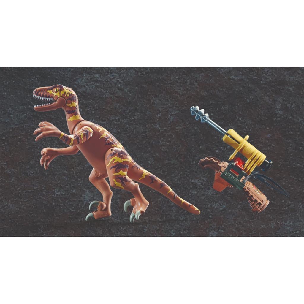 - De speelgoedset bevat de Dino Rise-held Jaden en nog een figuur, een Deinonychus met een afneembare harnasbevestiging, evenals een mes, lans, kanon en andere extra's voor spannende rollenspellen met dinosaurussen