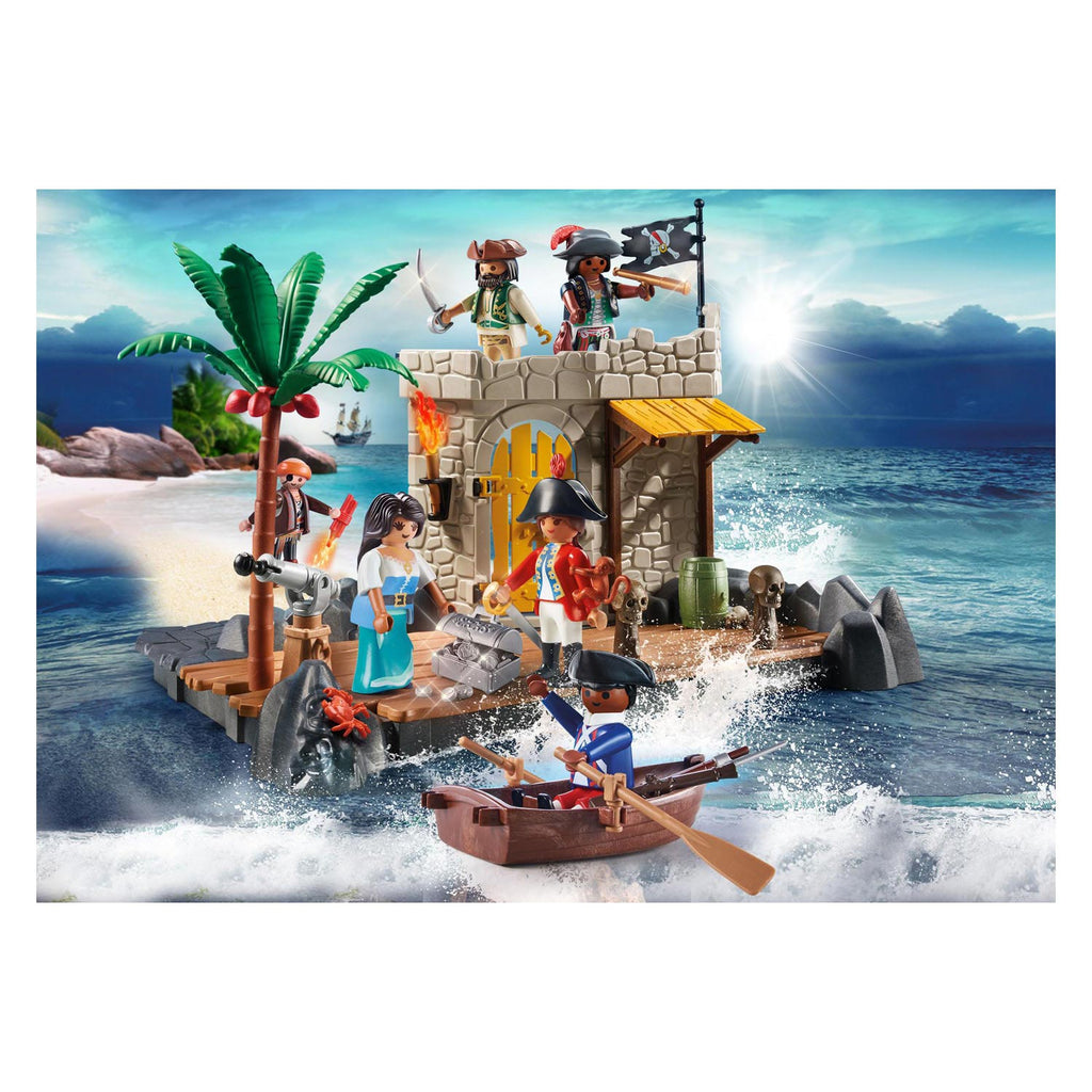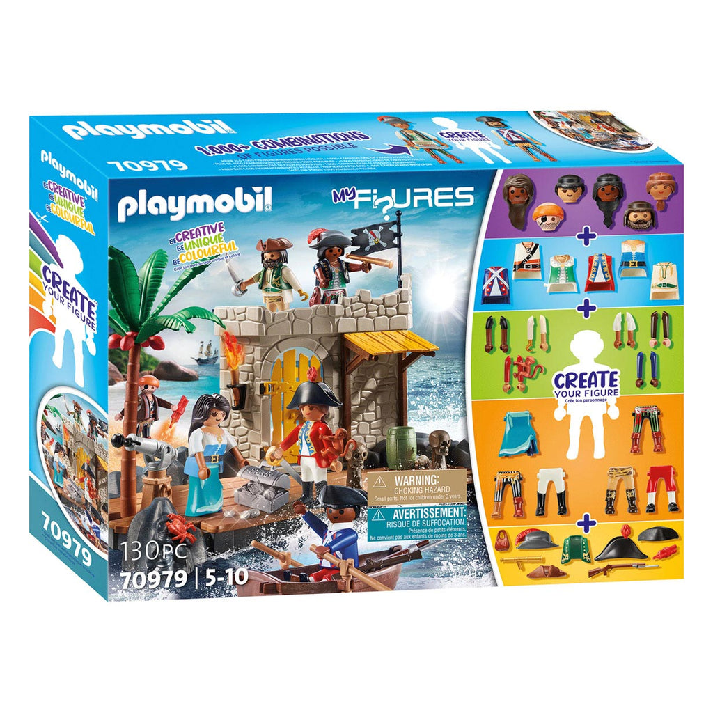 PLAYMOBIL My Figures: Pirateneiland speelset (nr. 70979). Op dit pirateneiland barst de strijd om de schat los. Wie gaat er met de gouden munten vandoor, de piraten of de zeevaarders? De My Figures-speelsets bevatten 6 PLAYMOBIL-poppetjes die in losse onderdelen geleverd worden, en vele accessoires. De figuren zijn zelf naar eigen wens in elkaar te bouwen en zijn te combineren met poppetjes uit andere PLAYMOBIL My Figures speelsets. Het Pirateneiland bestaat uit 130 onderdelen en is geschikt voor kinderen vanaf 5 jaar oud.