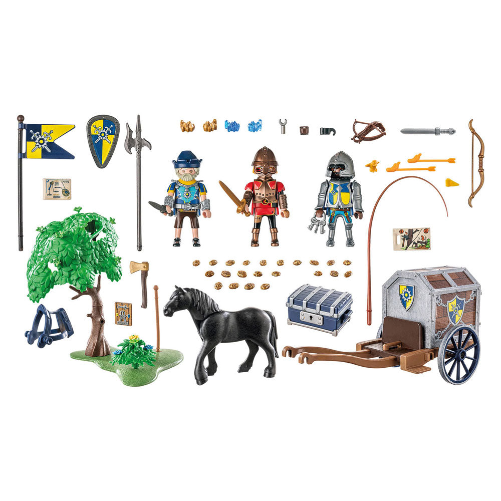 Waardevolle lading geladen! De Novelmorianen hebben drakengoud aan boord, samen met bouwplannen voor speciale wapens. Een ridder van de Burnham Raiders probeert de transportwagen te stoppen met behulp van een omgehakte boom