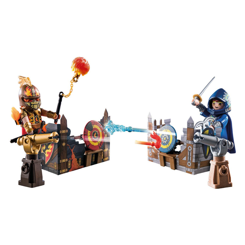 Op naar het spannende ridderduel! Vechter Gwynn geeft tegenwicht met het waterstraalkanon, Kaboom met zijn vuurprojectiel. Elke partij probeert het doelwit van de tegenstander te raken en omver te werpen. Gwynn is een goede scherpschutter, maar Kaboom kan er ook wat van en de twee zorgen voor een intense competitie. De gedetailleerde Novelmore speelsets nodigen je uit voor spannende ridderavonturen in de kinderkamer met interessante personages en ingenieuze functies. Veel plezier voor kinderen vanaf 4 jaar.