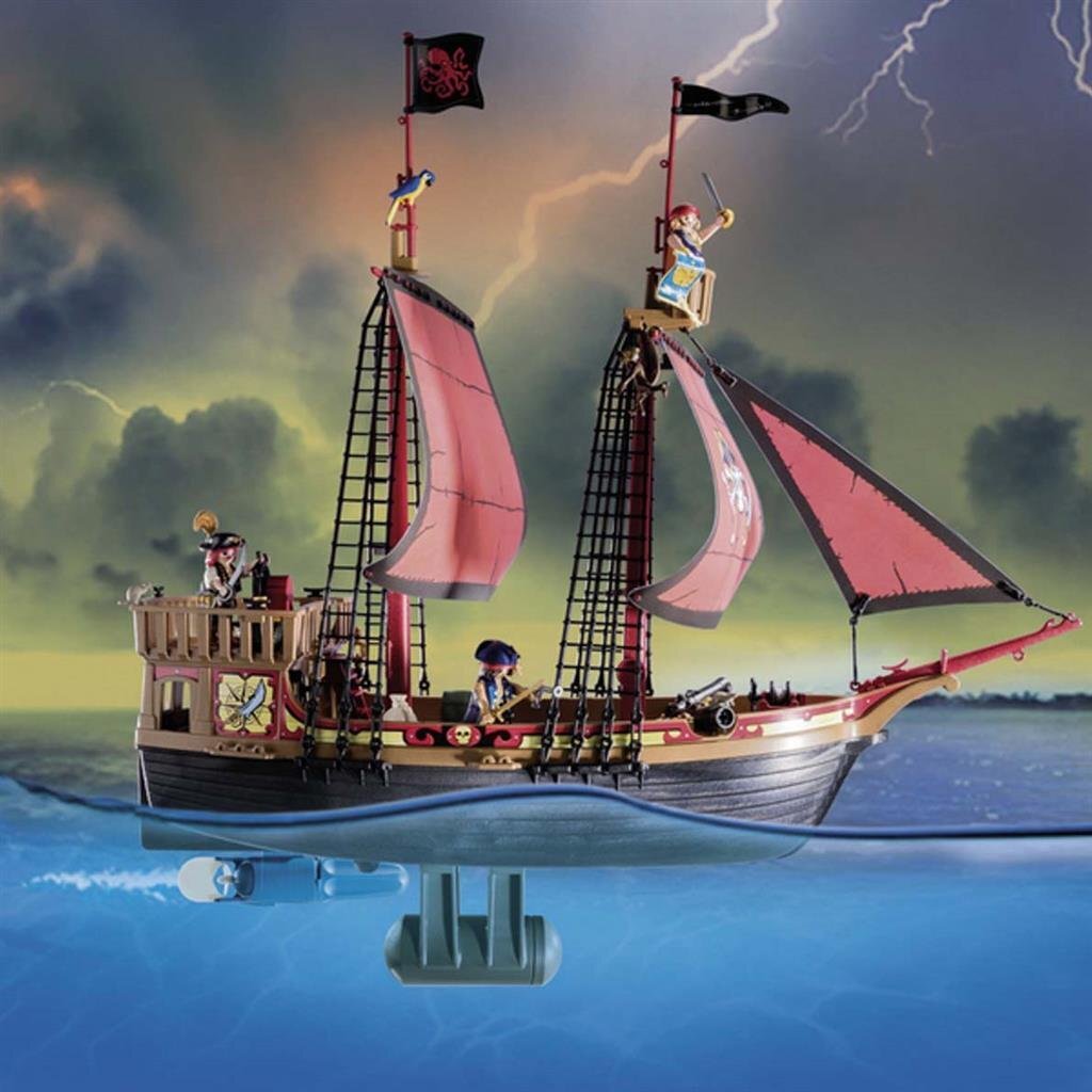 Playmobil 70411. De gevaarlijke piraten van dit schip met doodskoppen zijn de schrik van de zeven zeeën. De sluwe piratenkapitein en zijn crew zijn altijd op zoek naar de volgende schat of een volgend schip dat zij kunnen enteren. Het schip heeft vele accessoires zoals kanonnen, goud, zwaarden, pistolen en verrekijkers. Het schip kan drijven en kan worden uitgebreid met een RC-onderwatermotor (9853). Het schip is voorzien van wieltjes waardoor het schip ook over de vloer kan worden verplaatst.