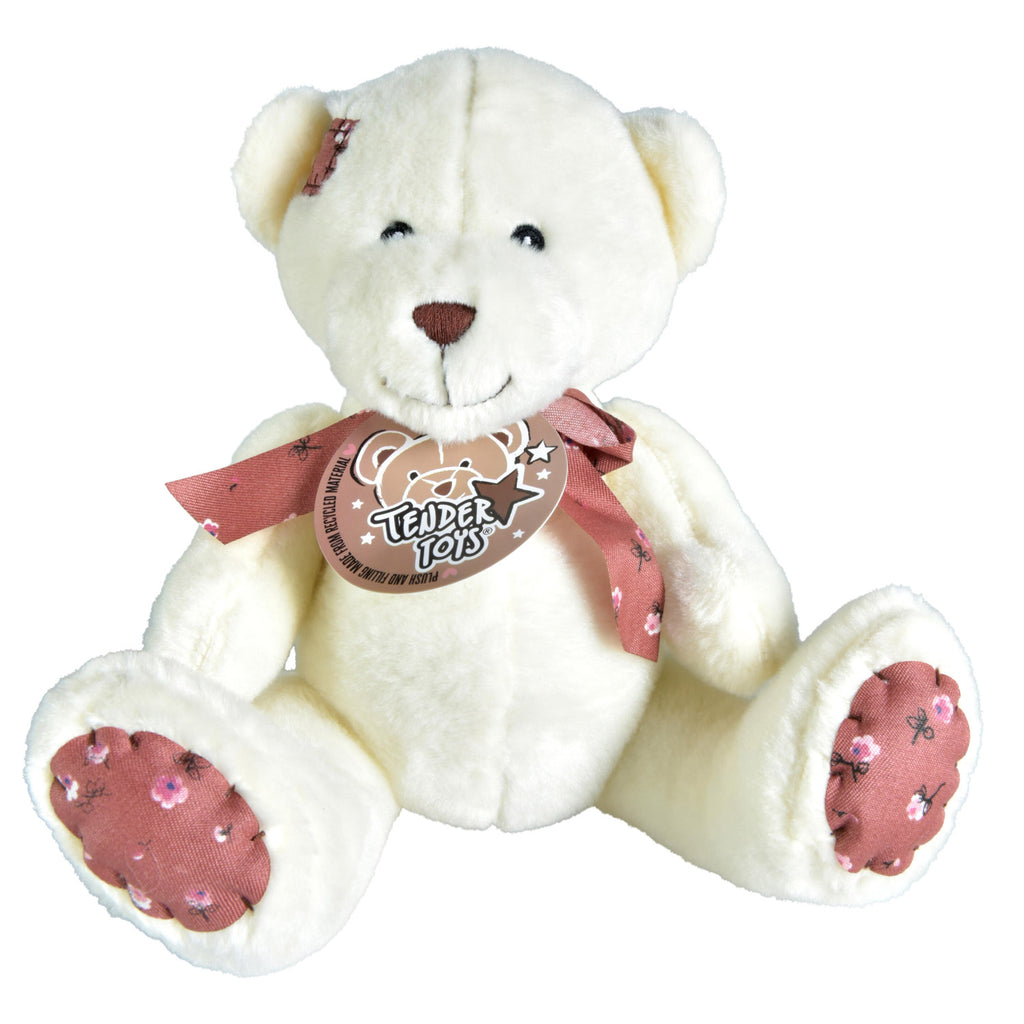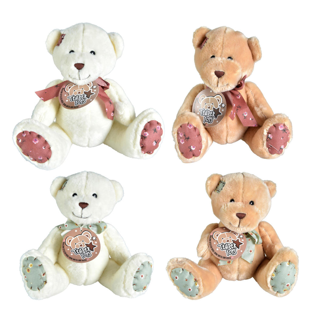 Pluchen beer met strik. Verkrijgbaar in wit en lichtbruin.