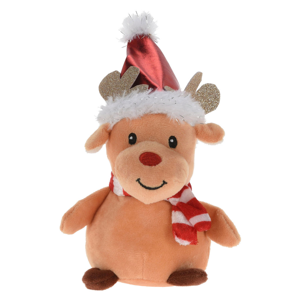 Pluchen kerstknuffels in de varianten sneeuwpop, rendier, kerstbeertje, kerstman en poolvos. De varianten worden door elkaar geleverd. Circa 14 centimeter groot.