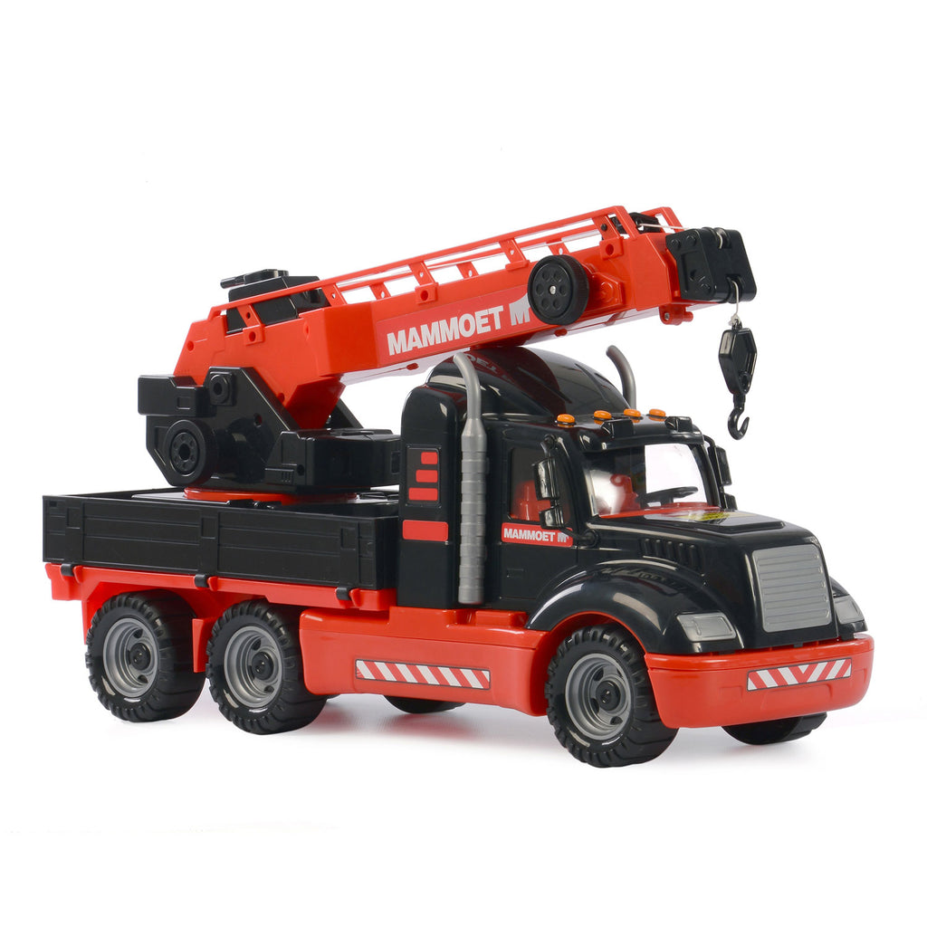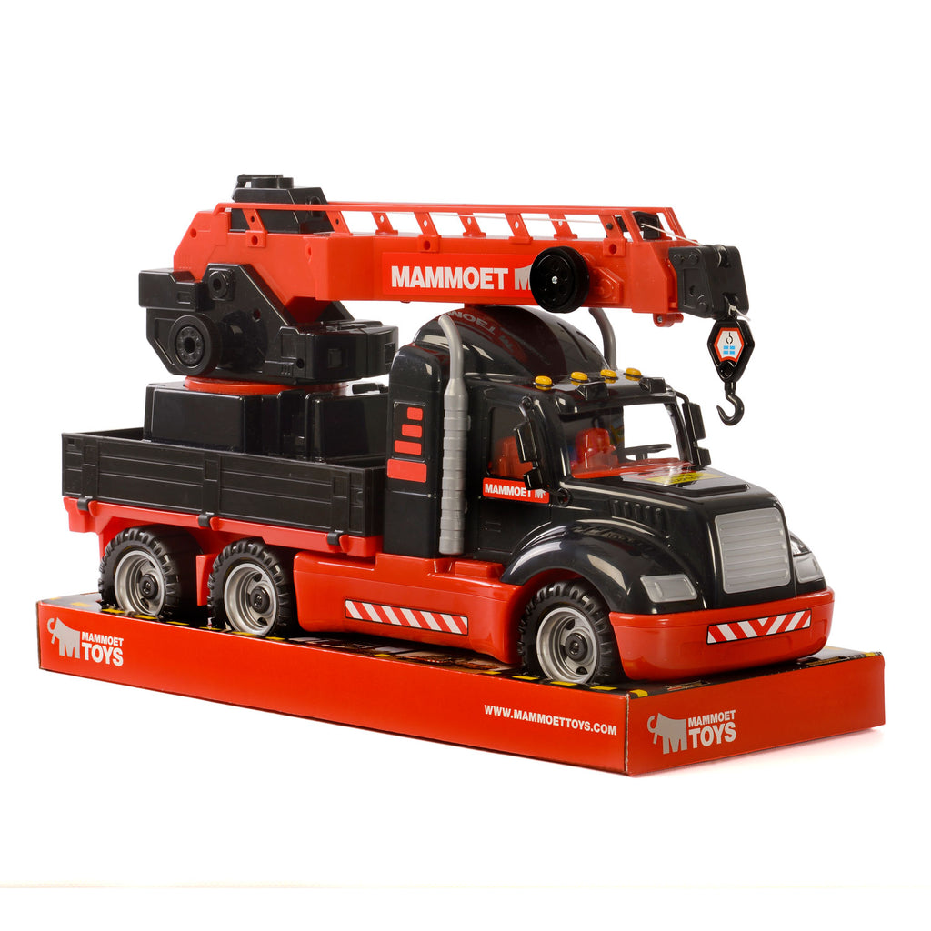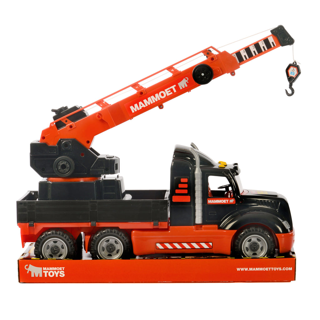 Verplaats de grootste materialen met deze Mammoet torpedo kraanwagen. Deze kraanwagen heeft een uitschuifbare arm met een speciale takelhaak. De arm is draaibaar waardoor je gemakkelijk overal bij kunt. Met de draaiknoppen schuif je gemakkelijk de arm en de takel uit. Op de 6 soepele wielen rijd je de stoere Mammoet wagen overal naar toe.
