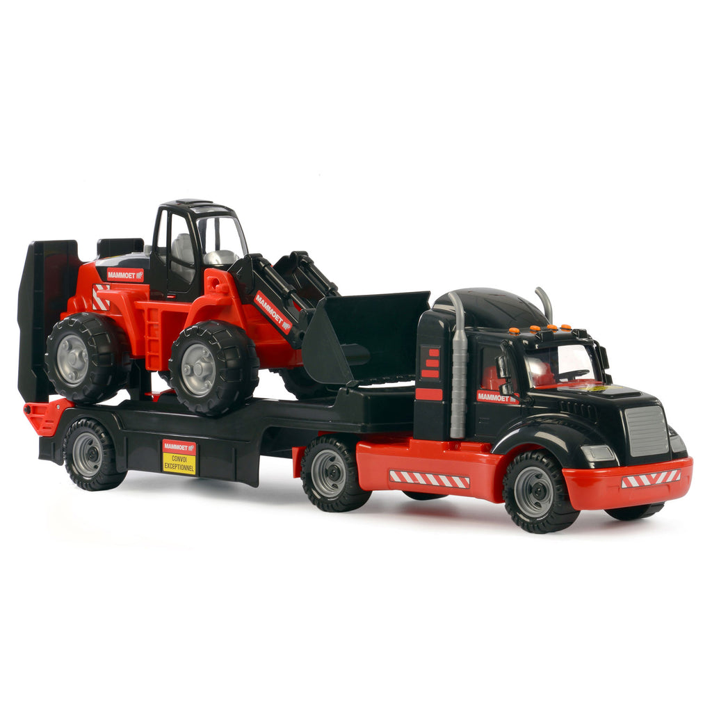 Breng de graafmachine naar de locatie met deze mega Mammoet torpedo vrachtwagen. Deze Mammoet torpedo vrachtwagen is speciaal gemaakt voor het vervoeren van grote voertuigen. Met de zware truck trekt hij de lader met daarop de graafmachine gemakkelijk voort. De aanhanger is gemakkelijk wendbaar en heeft een opklapbare helling, zodat je de graafmachine er gemakkelijk vanaf rijdt. De Mammoet graafmachine heeft een voorlader waarmee je gemakkelijk materialen verplaatst. Waar ga jij aan de slag vandaag?