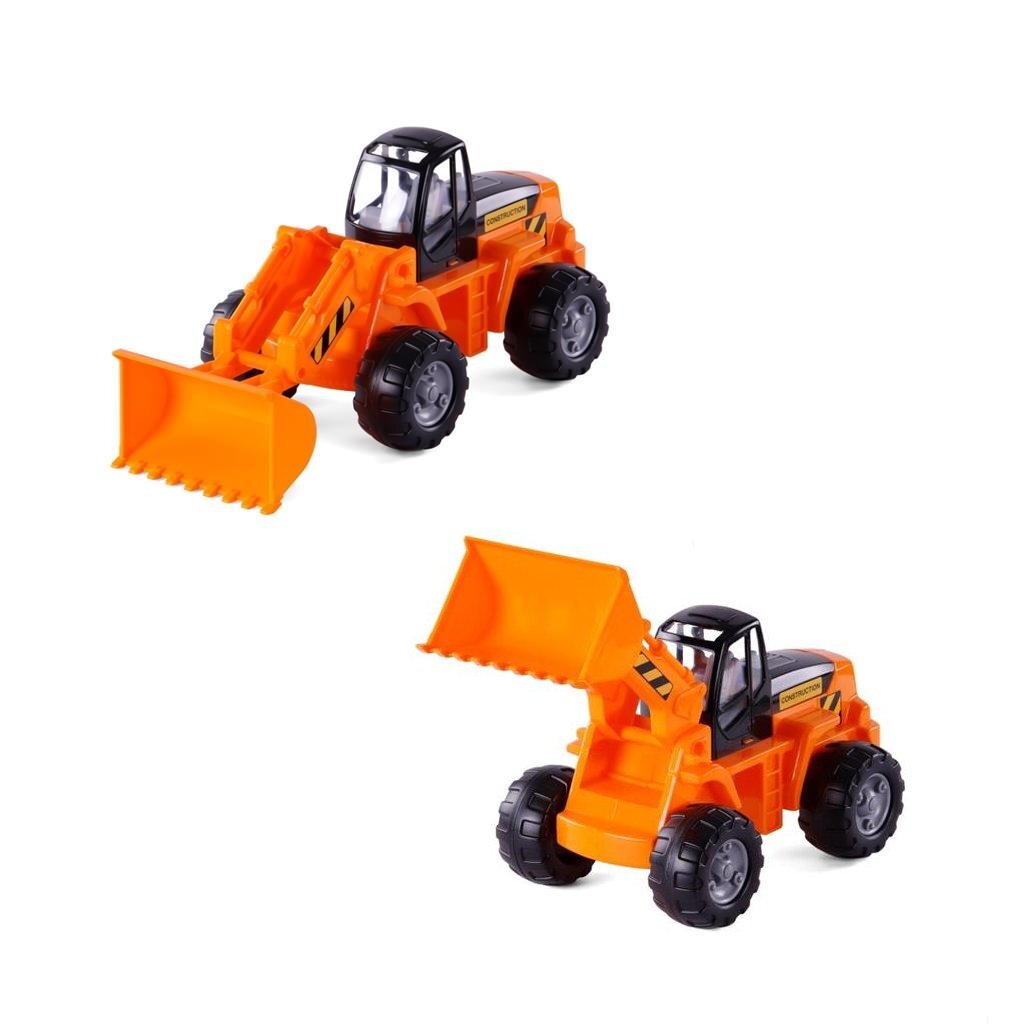 Stevige oranje-zwarte kunststof vrachtwagen met oplegger en aparte bulldozer. Geschikt voor zowel binnen als buiten. Geweldig speelgoed voor kinderen vanaf 1 jaar oud.