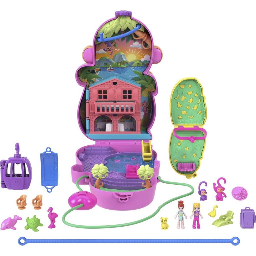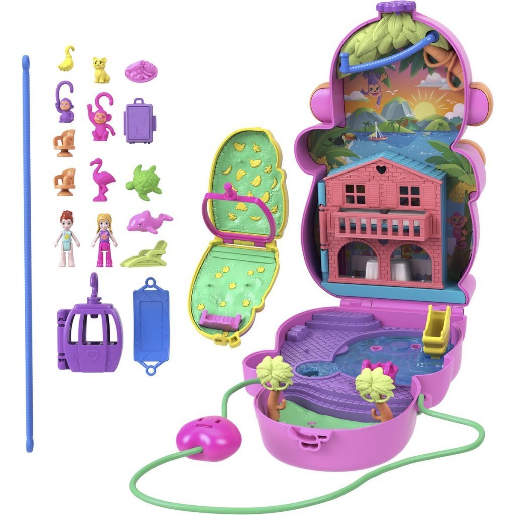 De babyaap kruipt lekker tegen zijn moeder aan, waarna ze vervolgens allebei open kunnen en hun eigen scènes in junglethema kunnen uitspelen. De speelset bevat twee minipoppen en 12 accessoires, waaronder schattige huisdierapen. Slinger van links naar rechts via de zipline, neem een duik in het zwembad, schommel op de hangmat en eet samen een banaantje in de apenjungle. Ideaal voor plezier onderweg. Pak de set in en draag alles met het handige bandje. Een geweldig cadeau voor kinderen vanaf 4 jaar, vooral als ze graag jungle-avonturen beleven met dierenvrienden! Afwijkende kleuren en versieringen mogelijk.