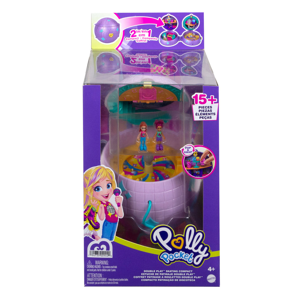 Beleef de disco met Polly Pocket op de rolschaatsbaan! Deze dubbele compacte speelset Rolschaatsen is perfect geschikt om thuis en onderweg mee te spelen. De set ziet eruit als een discobal en als je hem uitklapt, zie je 4 verschillende speelplekken: 2 compacte speelsets in 1. De set bevat ook 2 micropoppen, 15 accessoires en 1 modeaccessoire. Kinderen kunnen leuke thema-activiteiten ontdekken en spelen: rolschaatsen op de baan, draaien bij de dj, chillen bij de snacks, popcorn bakken in de popcornmachine, gamen in de speelhal, bowlen op de bowlingbaan, de pooltafel omtoveren tot een luchthockeytafel en nog veel meer. Sommige accessoires hebben een verwisselfunctie, zodat kinderen ze op verschillende plekken kunnen zetten voor eindeloze speelmogelijkheden! De compacte speelset heeft ook een lange draagband, zodat kinderen de set als een tas kunnen dragen en overal mee naartoe kunnen nemen! Kleuren en versieringen kunnen variëren. Een fantastisch cadeau voor kinderen vanaf 4 jaar.?