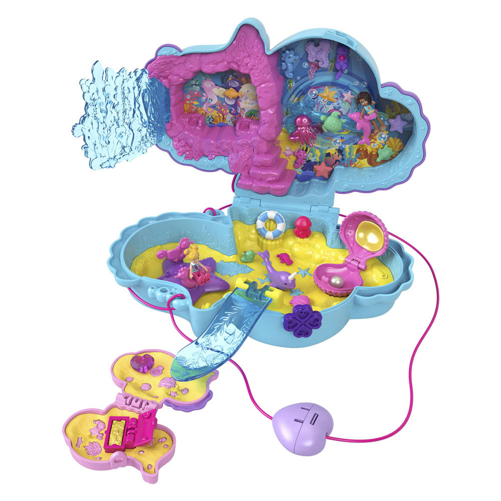 Beleef een avontuur onder water met Polly Pocket in de Papa en ik zeepaardtas. Deze 2-in-1 compacte speelset is vol verhaalplezier! Het babyzeepaard kruipt lekker in papa's buidel, waarna ze vervolgens allebei hun eigen scènes kunnen uitspelen. De speelset bevat twee minipoppen en 13 accessoires, waaronder schattige zeedieren. Reis van de ene poederdoos naar de andere met de waterglijbaan, verken een geheime strandgrot met schat, snel je voort op de zeester met pop Shani of open de schelp voor een schitterende parel. Ideaal voor plezier onderweg. Pak de set in en draag alles met het handige bandje. Een geweldig cadeau voor kinderen vanaf 4 jaar, vooral als ze van dieren en de oceaan houden! Afwijkende kleuren en versieringen mogelijk.