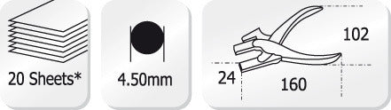 1 gaats ponstang. Kan tot maximaal 20 vel. Met afstandsindicator. Verchroomd metalen apparaat. Met gratis 100 ponsogen. (BPE-20)