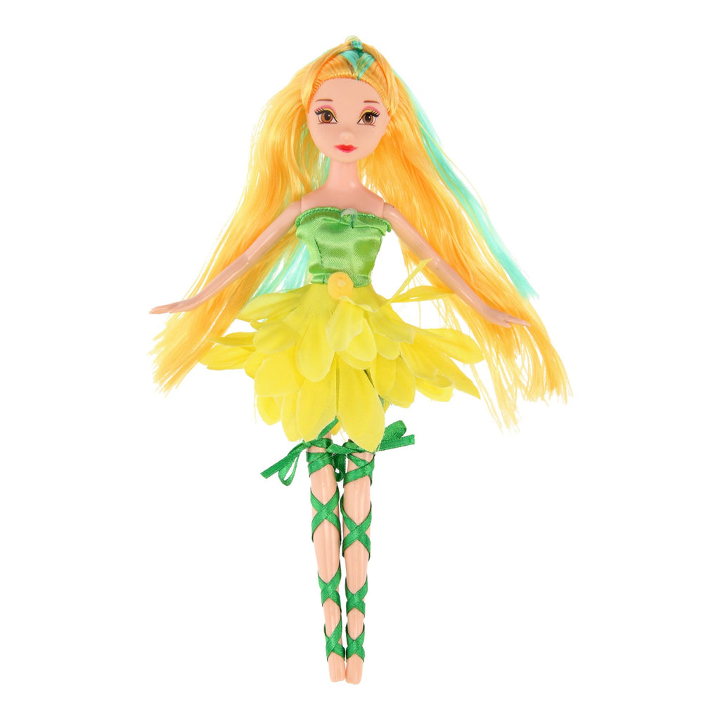 Beleef de mooiste avonturen met deze bloemenfee! Ook zonder vleugels kan deze fee vliegen! Door haar mooie jurk lijkt het alsof ze altijd zweeft. Inhoud: feeënpop met outfit. De pop kan niet los staan en is 24 cm lang.