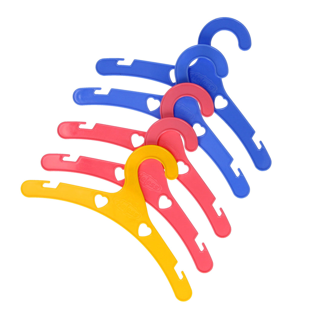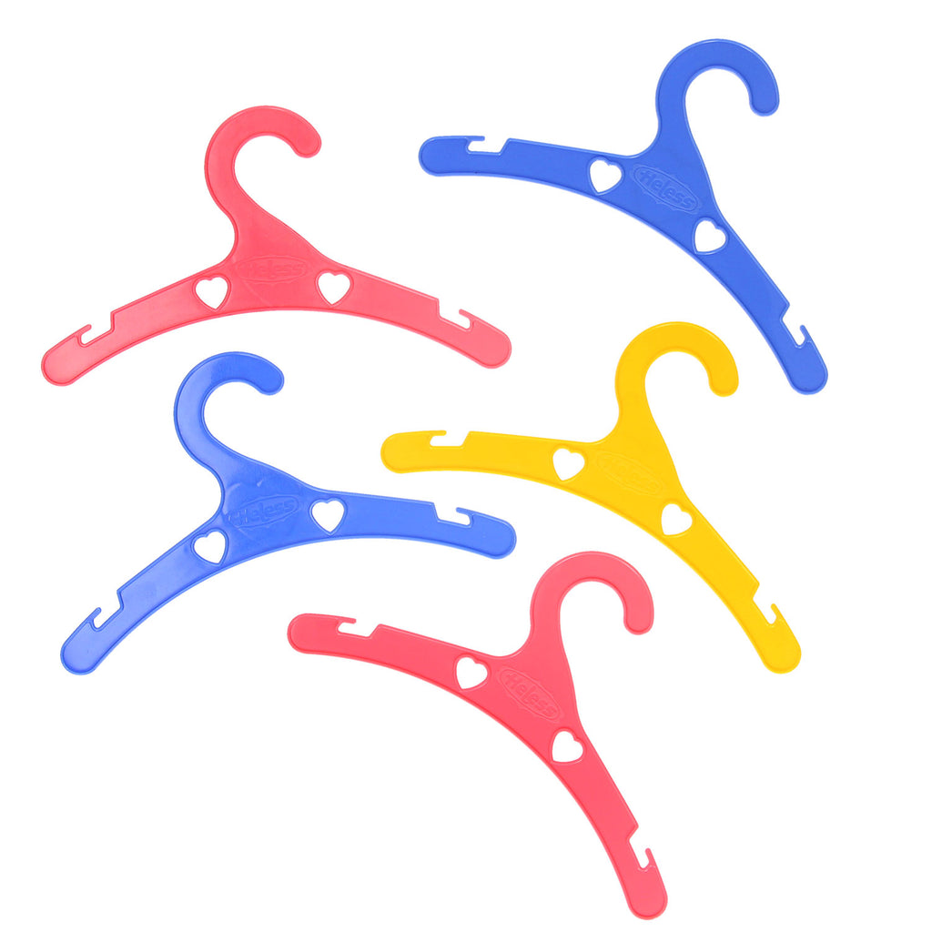 Set van 5 kunststof poppen kledinghangers in verschillende kleuren.