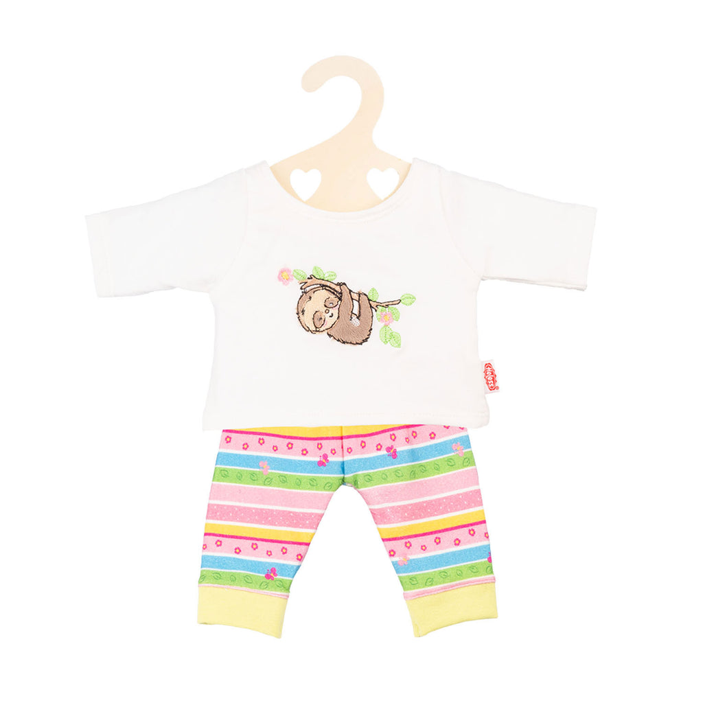 Wat slaapt jouw pop lekker met de Poppen Pyjama Luiaard aan! Deze pyjama is voorzien van een klittenbandsluiting op de rug, kleurrijke broek en een vrolijke afbeelding van een luiaard. De Poppen pyjama Luiaard is geschikt voor poppen van 35 tot 45 centimeter. Inclusief houten klerenhangertje.