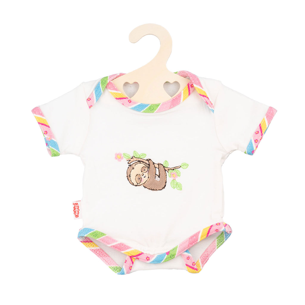 Dat staat leuk: de poppen Romper Luiaard! de katoenen romper heeft een kleurrijk randje en luiaard afdruk. Aan de onderkant zitten handige drukknoopjes. De Poppen Romper Luiaard is geschikt voor poppen van 28 tot 35 centimeter.
