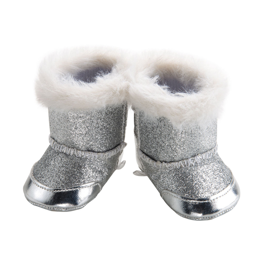 Met deze zilveren glitterlaarsjes is jouw pop klaar voor de winter! De laarsjes zijn geschikt voor poppen van 30 tot 34 centimeter lang.