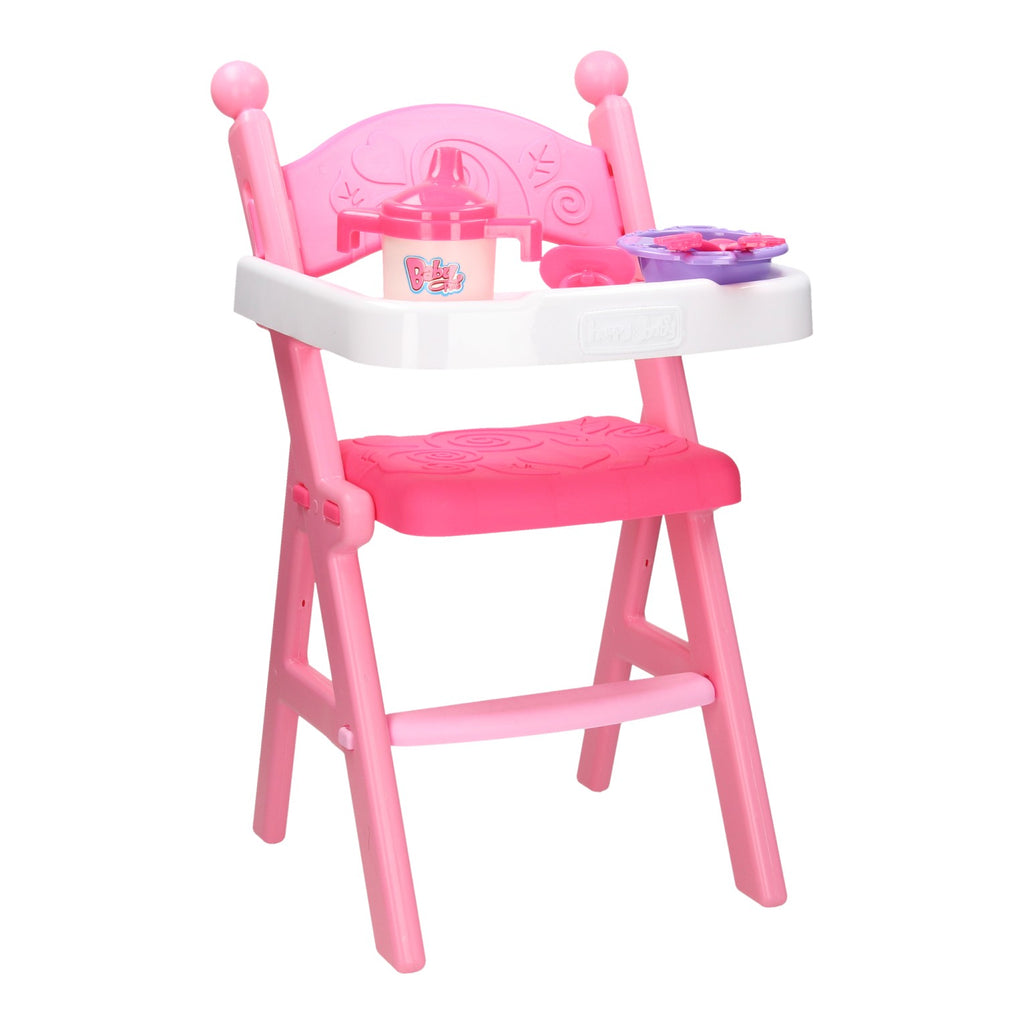 In deze leuke roze/witte poppenstoel zit je pop comfortabel. De poppenstoel heeft een ruim eetblad en een fijne voetensteun. Deze poppenstoel wordt geleverd inclusief eetsetje (bord, bestek en tuitbeker) en een speen. Gemaakt van stevig kunststof. Exclusief pop.