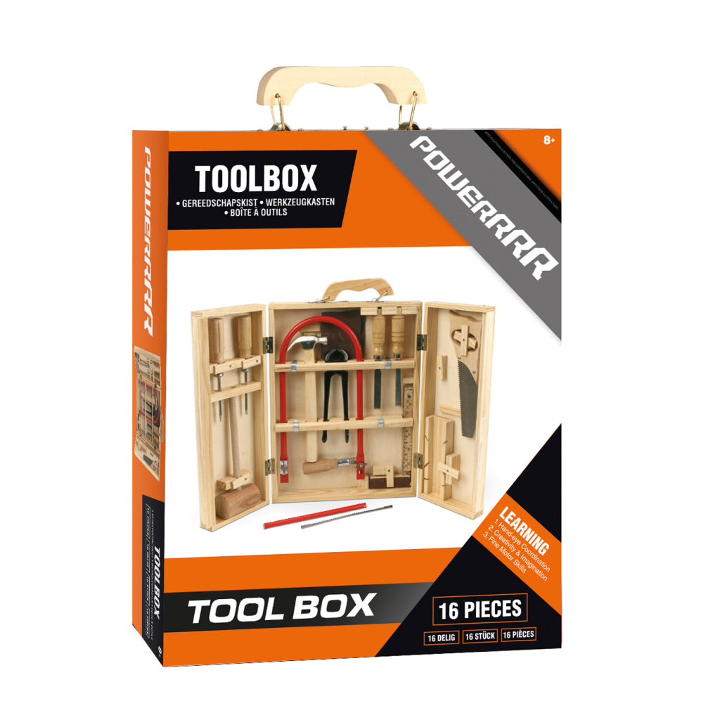 Powerrrr 16-delige gereedschapskist met figuurzaag. Geschikt voor kinderen vanaf 8 jaar.