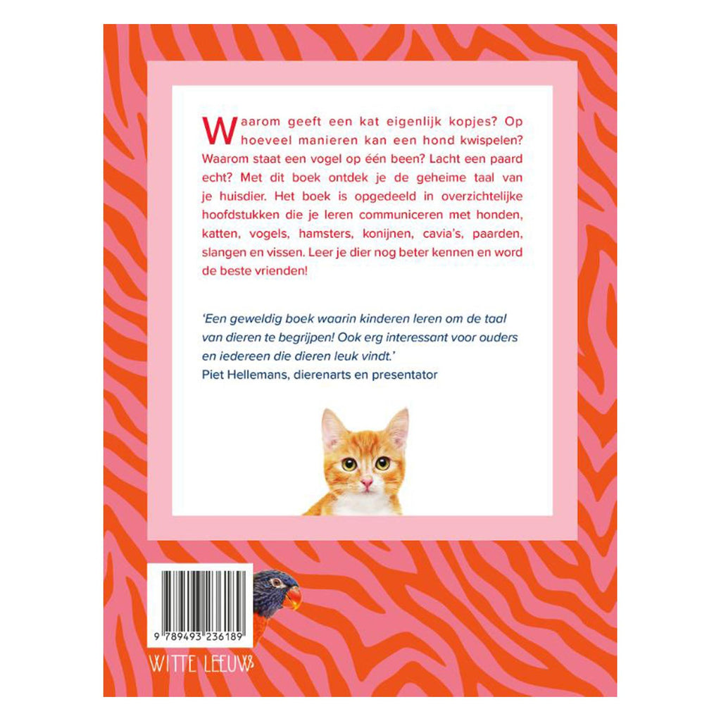 Het boek is opgedeeld in overzichtelijke hoofdstukken die je leren communiceren met honden, katten, vogels, hamsters, konijnen, cavia’s, paarden, slangen en vissen. Leer je dier nog beter kennen!