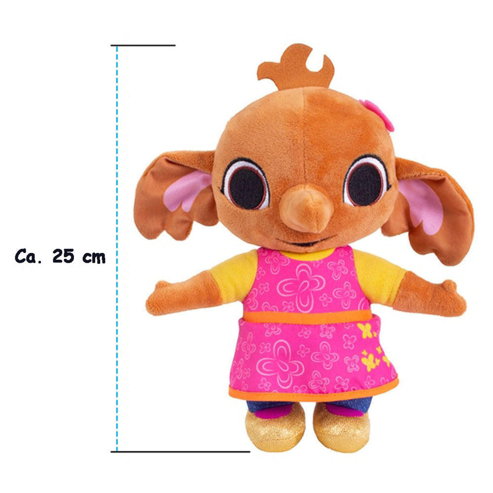 Kijk jij ook altijd naar de avonturen van Bing en zijn vriendjes? Dan ben je vast ook dol op deze Pratende Sula knuffel! Druk in haar buik en zij zal tegen je lachen en praten. Ze zegt wel 15 leuke woorden en zinnen, zoals: ”Hallo”, “Ik ben het!” en “Ik verander jou in een kikker, woesj!”. Sula is zeer gedetailleerd gemaakt van zachte stof, dus je kunt heerlijk met haar knuffelen! Sula is ca. 25 cm groot. Leeftijdsindicatie: 12 maanden+. Batterij informatie: 3 x LR44 batterijen (meegeleverd).