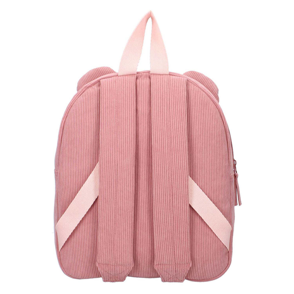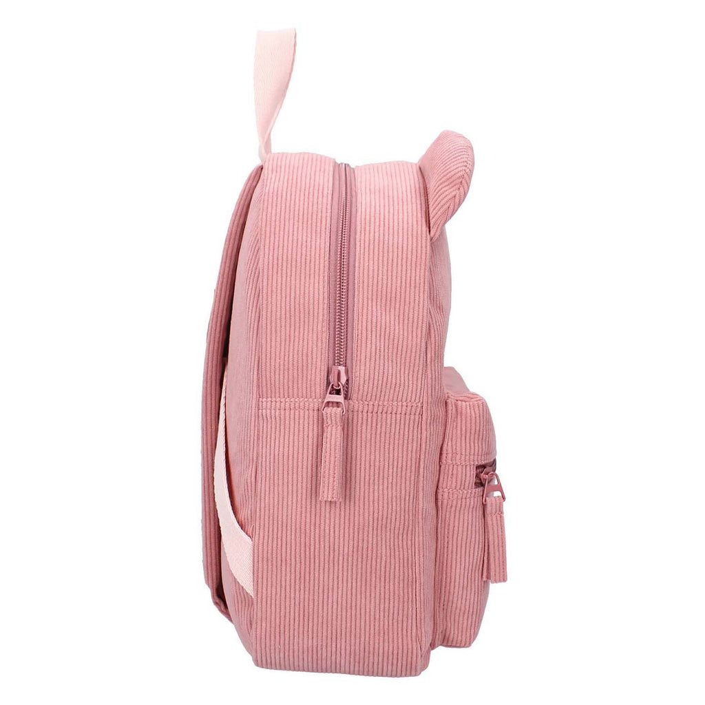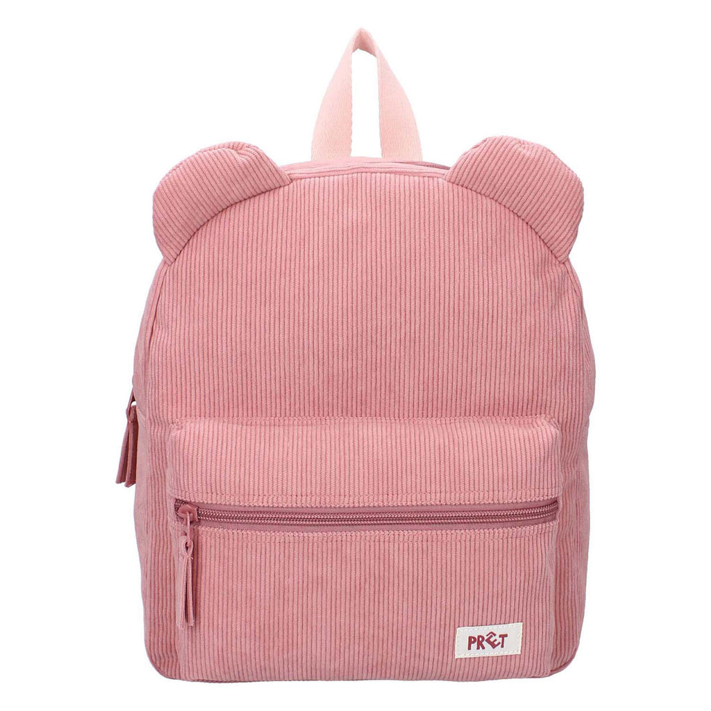 Deze trendy rugzak van Prêt komt uit de ???Ridge And Row??? collectie en is een echte must-have! De roze tas is gemaakt van zachte ribstof en biedt voldoende ruimte voor alle dagelijkse spulletjes. Het hoofdvak is afgewerkt met schattige berenoortjes en sluit, net als het voorvak, met een stevige ritssluiting. Aan de bovenkant zit een handige lus om de tas makkelijk op te hangen. De verstelbare schouderbanden zorgen ervoor dat de rugzak comfortabel zit en perfect past bij ieder kind.