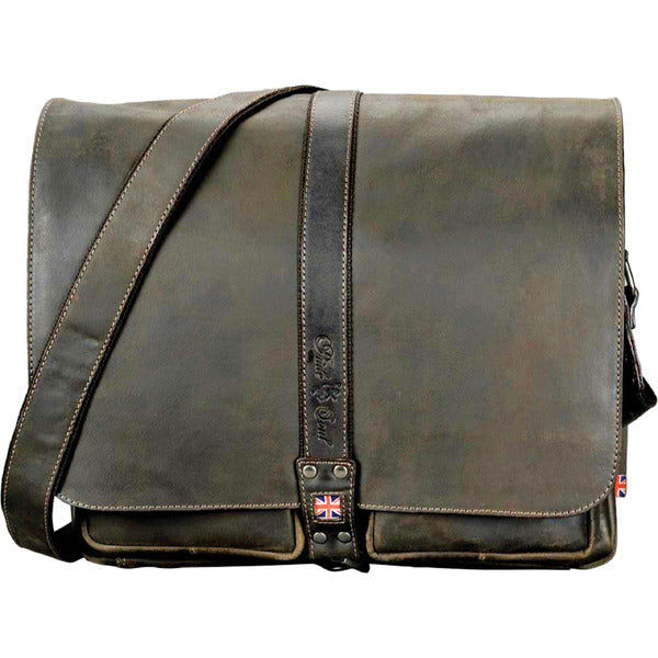 Pride and Soul leren schoudertas met verstelbare schouderriem en modieus karabijnslot.Compartiment met rits aan de achterkant. Binnenin: gevoerd laptopcompartiment, hoofdcompartiment met opbergvak voor smartphone, drie pennenhouders, naamkaartvak en sleutelhanger. Afmeting 34x36x12 cm. Materiaal leer, kleur bruin.