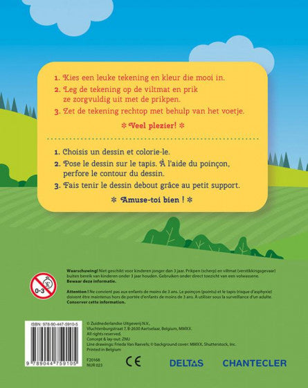 Met dit superleuke prikblok oefenen kinderen hun handvaardigheid op een speelse manier. Laat je kind een van de paardenkleurplaten uitkiezen en inkleuren. Leg daarna de kleurplaat op de viltmat en gebruik de prikpen om gaatjes te prikken langs de stippellijnen. Duw ten slotte de tekening uit en zet het paard rechtop met behulp van het voetje. Ideaal als voorbereiding op het leren schrijven!