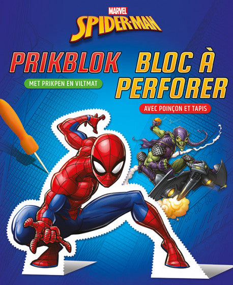 Met dit superleuke prikblok oefenen kinderen vanaf 3 jaar hun handvaardigheid op een speelse manier. Laat je kind een van de kleurplaten van Spider-Man en zijn vrienden uitkiezen en inkleuren. Leg daarna de kleurplaat op de viltmat en gebruik de prikpen om gaatjes te prikken langs de stippellijnen. Duw ten slotte de tekening uit en zet ze rechtop met behulp van het voetje. Ideaal als voorbereiding op het leren schrijven! 9 kleurplaten met prikpen en viltmat.