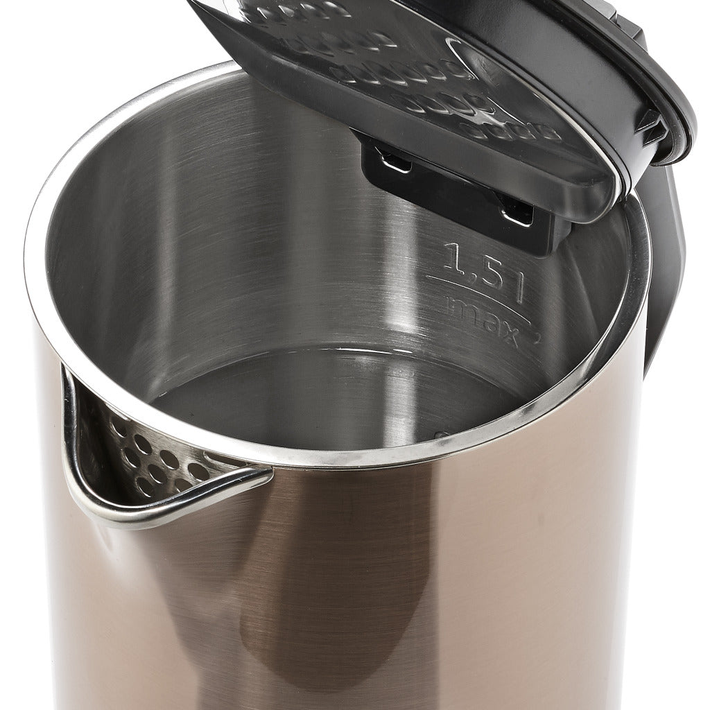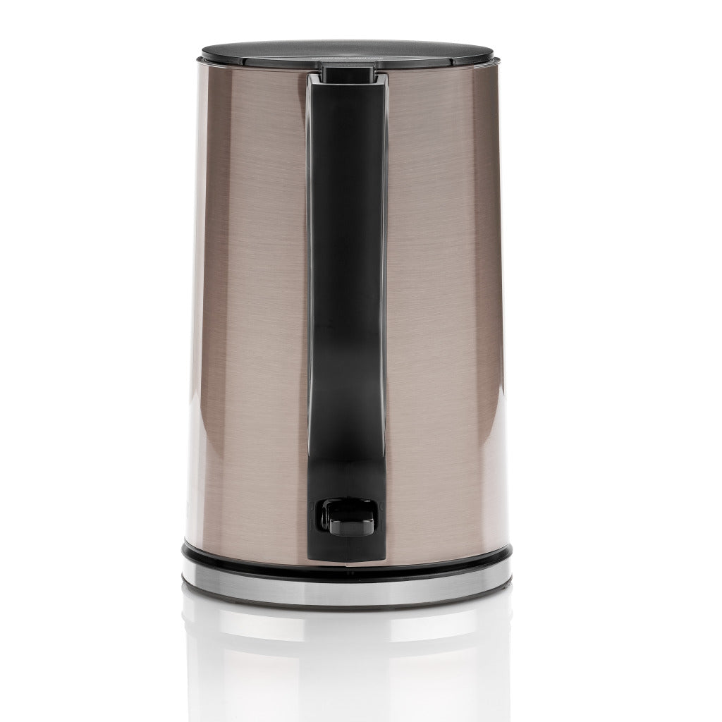 Moderne, trendy koperen behuizing zodat je ook koperen accenten in de keuken kan aanbrengenDubbel geïsoleerde behuizing blijft koel zodat er geen gevaar is om jezelf te verbranden aan de behuizingOndanks het krachtige 2200 Watt vermogen zodat het water snel kookt, is de waterkoker zeer stilHoudt het water extra lang warm zodat je niet steeds opnieuw energie verbruikt om het water weer op temperatuur te krijgenMakkelijk schoon te maken dankzij het verborgen verwarmingselement en de naadloze binnenkant