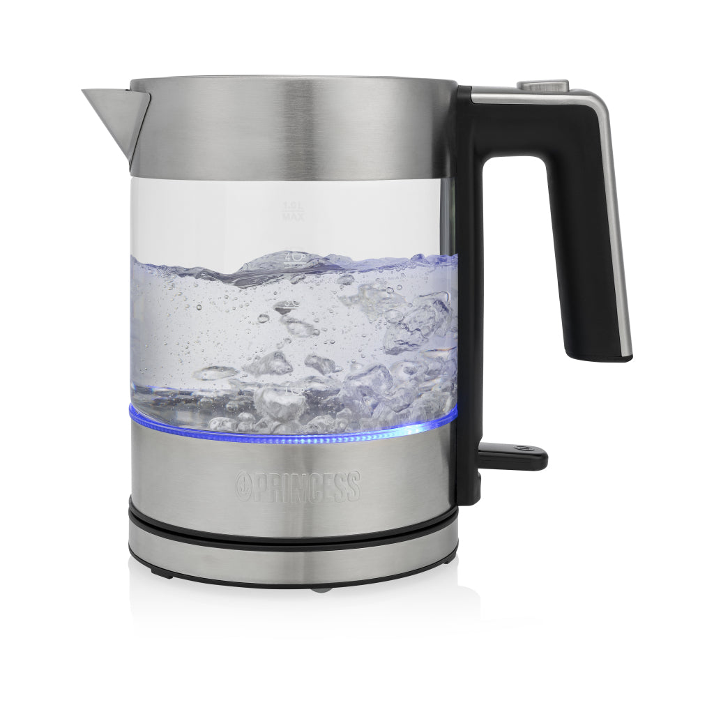 Op zoek naar een compacte maar moderne en goede waterkoker? De Princess 236040 glazen waterkoker Brighton biedt optimale prestatie, maar neemt weinig ruimte in beslag. Het hoge kwaliteit glas geeft je de mogelijkheid om het hele kookproces te volgen en de blauwe lichtring zorgt voor een extra speels effect. De kan is compleet afneembaar van de basis en heeft een lange levensduur dankzij het geïntegreerde verwarmingselement. Met de Brighton drink je thee in stijl.