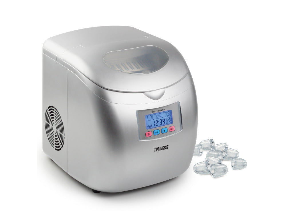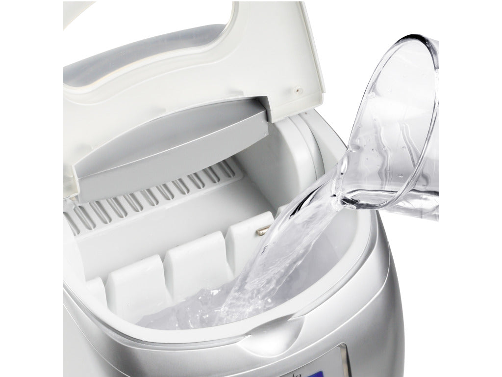 Volautomatisch apparaat om drie formaten ijsblokjes te maken. Een aanwinst voor de (huis-)bar. Maakt iedere 9-13 minuten 12 ijsblokjes (afhankelijk van het formaat). Met aan-/uitschakelaar en lcd-display. Het display geeft aan wat het ingestelde formaat is, wanneer de ijsblokjes gereed zijn en wanneer het water op is. Voorzien van een nauwkeurige digitale timer waarmee de aan- en uittijd ingesteld kan worden en die tevens het juiste tijdstip aangeeft. Door de timer is een energiebesparende werking mogelijk, zodat de machine niet langer aanstaat dan nodig is.