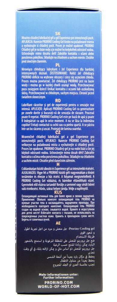 De bijzonder verkoelende Cooling Gel Strong van PRORINO belooft een intensere sensatie voor sensueel tintelende momenten. De kleurloze glij- en belevingsgel op waterbasis is gemakkelijk af te wassen en laat geen sporen na tijdens opwindende momenten. Door de zijdezachte consistentie voelt de gel aangenaam aan op de huid, plakt niet en biedt optimale glij-eigenschappen.