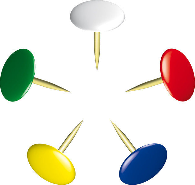 Punaise met een plastic overtrokken kop 9,5mm in assorti kleuren. Verpakt in een plastic doosje. Kleur kop assorti. Doos à 100 stuks.