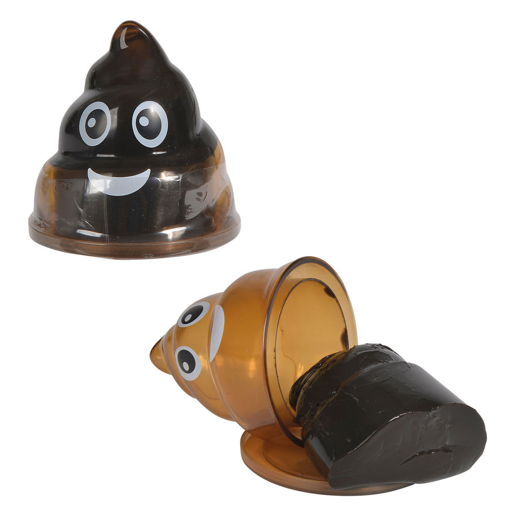Puuupsi Poep Slijm in Potje. Bruin slijm in een potje in de vorm van een drol. Geschikt voor kinderen van 3 tot 6 jaar oud.