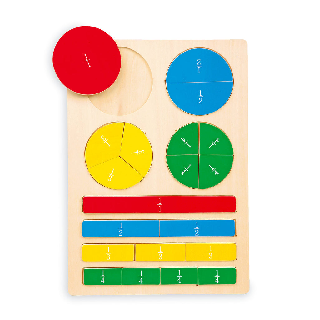 Deze geweldige puzzel helpt kinderen om het rekenen met breuken te begrijpen. Hier worden 1/1 tot 1/4 aan de hand van rechthoeken en cirkels visueel weergegeven!