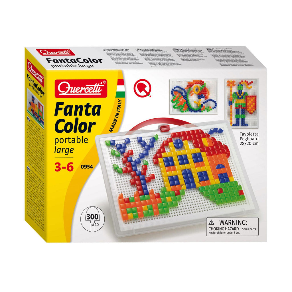 Quercetti Insteek Mozaïek, 300 pins. Voorbeeldboekje niet inbegrepen maar wel digitaal te downloaden. De instructies om voorbeelden te downloaden zit in de set.