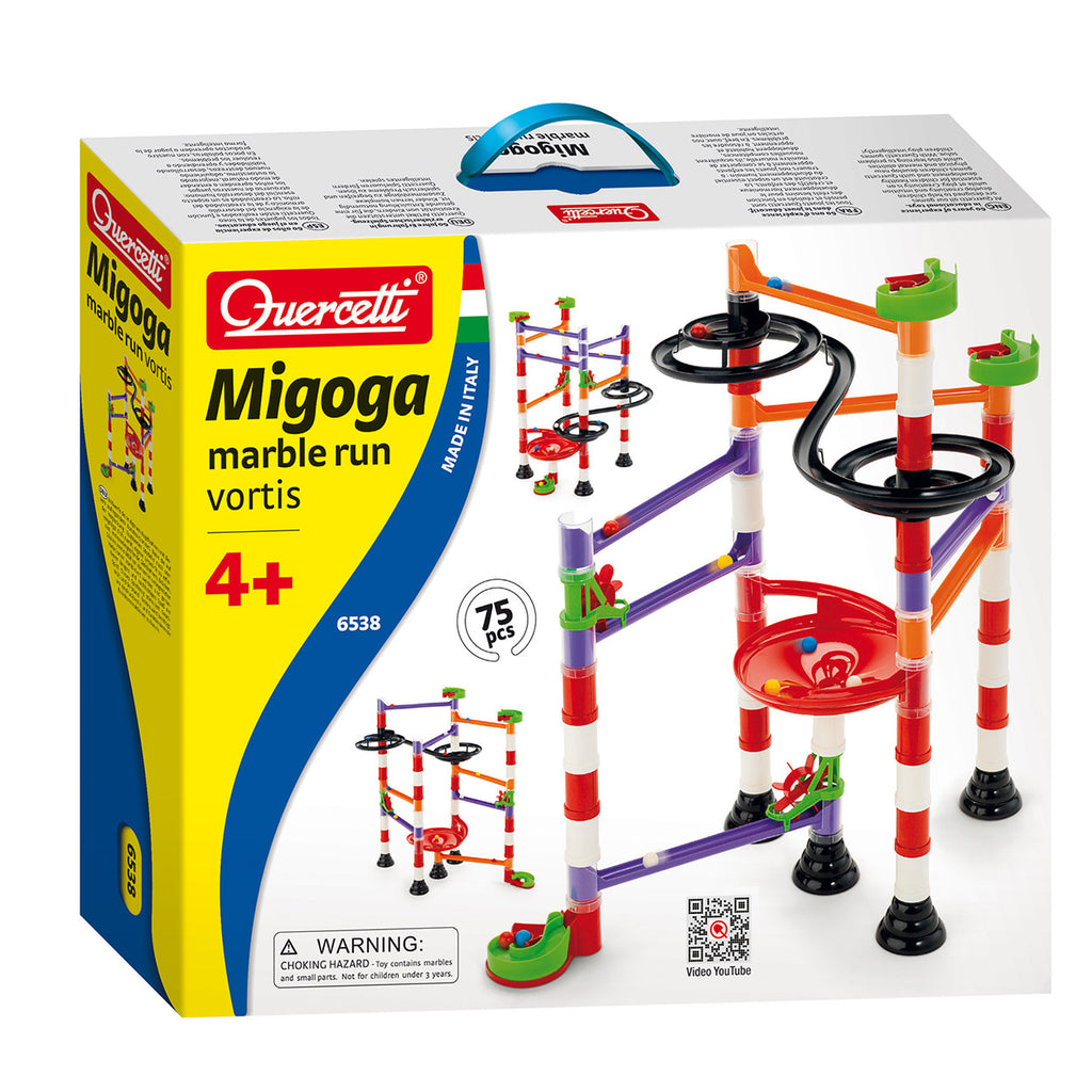 Maak een spannende knikkerbaan met deze Quercetti Migoga 'Vortis' set. Stapel de verschillende onderdelen op elkaar en voeg voor extra spanning de scherpe bochten en de draaikolk toe. Met de knikkerschieter zorg je voor een supersnelle lancering! De set bevat 80 onderdelen om de baan uit het voorbeeld of je eigen creaties mee te maken. Inclusief knikkers en een instructieboekje.