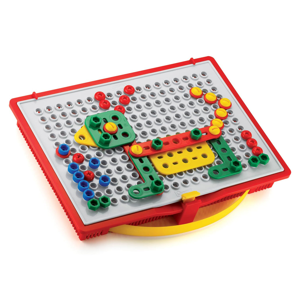 Quercetti FantaColor tecno activiteit speelgoed helpt kinderen om driedimensionale beelden te creëren door de vormen vast te schroeven op het speciale witte bord. Uitstekend voor de hand-oogcoördinatie. Kinderen kunnen hun eigen creaties maken of de voorbeelden volgen uit het voorbeeldboekje. Alle onderdelen kunnen erin opgeborgen worden en dankzij het grote handvat is alles makkelijk te dragen. Geschikt voor kinderen vanaf 4 jaar.