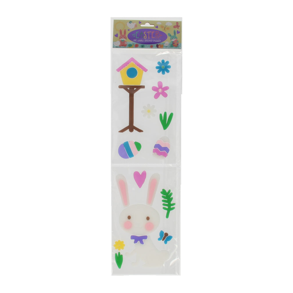 Set raamstickers van gel in leuke paas-/lentevormen, waaronder een paasei, konijn en vogelhuisje. Geschikt voor kinderen van 3 jaar en ouder.