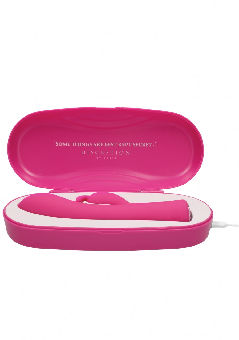 De DISCRETION Rabbit vibrator is muisstil met minder dan 50dB, maar zorgt wel voor een krachtige orgastische stoot, op het moment dat u dat wilt. De nieuwe generatie F1-motor, met 10 verschillende standen, zorgen voor een toerental tot 8500 omw/min in de punt voor extra stimulatie van uw clitoris en uw G-spot. Een prachtige diamant aan de onderkant, die zorgt voor extra elegantie. Hij past als een handschoen in een discreet doosje met een USB-uitgang en zorgt voor 60 minuten ongekend plezier per oplaadbeurt. Kabel inbegrepen.