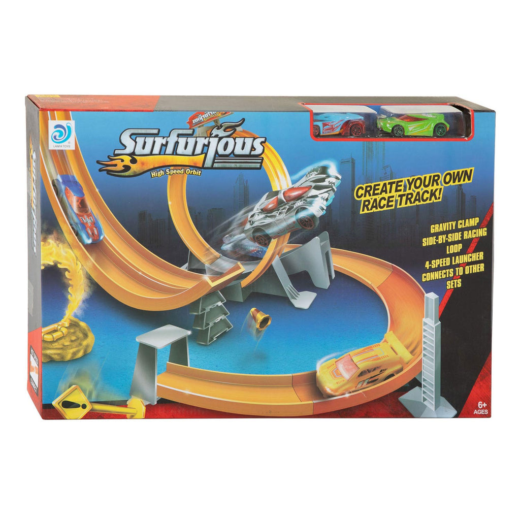Racebaan Downhill met Looping. De racebaan is uit te breiden met andere sets van deze lijn. Geschikt voor kinderen vanaf 6 jaar.