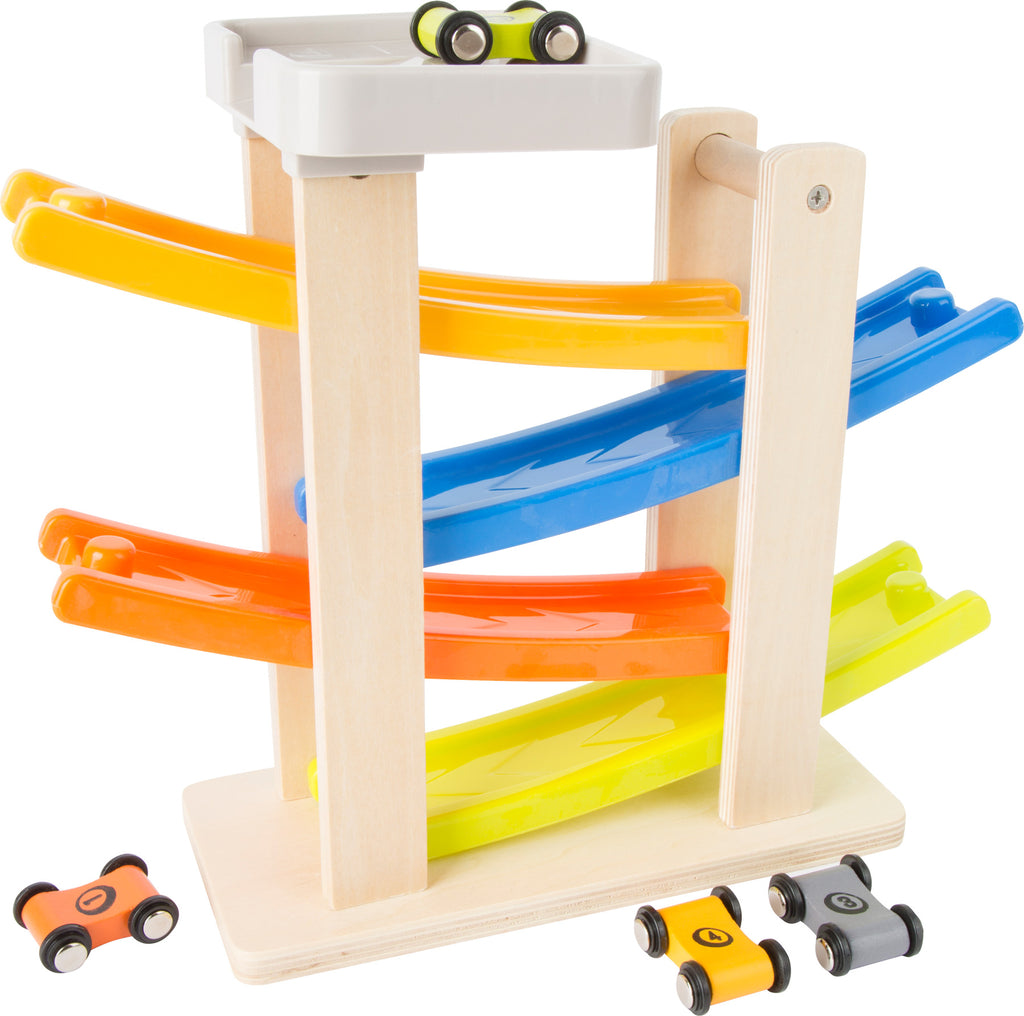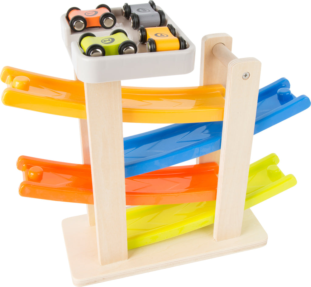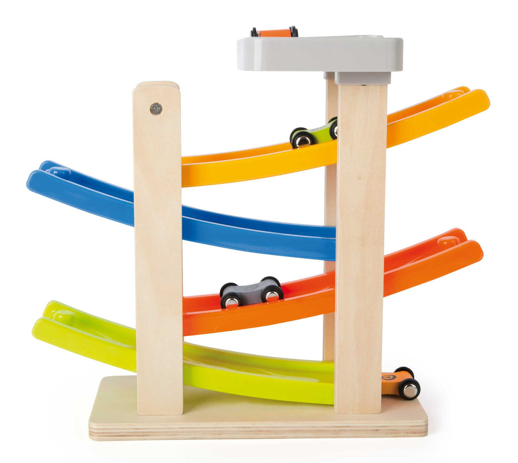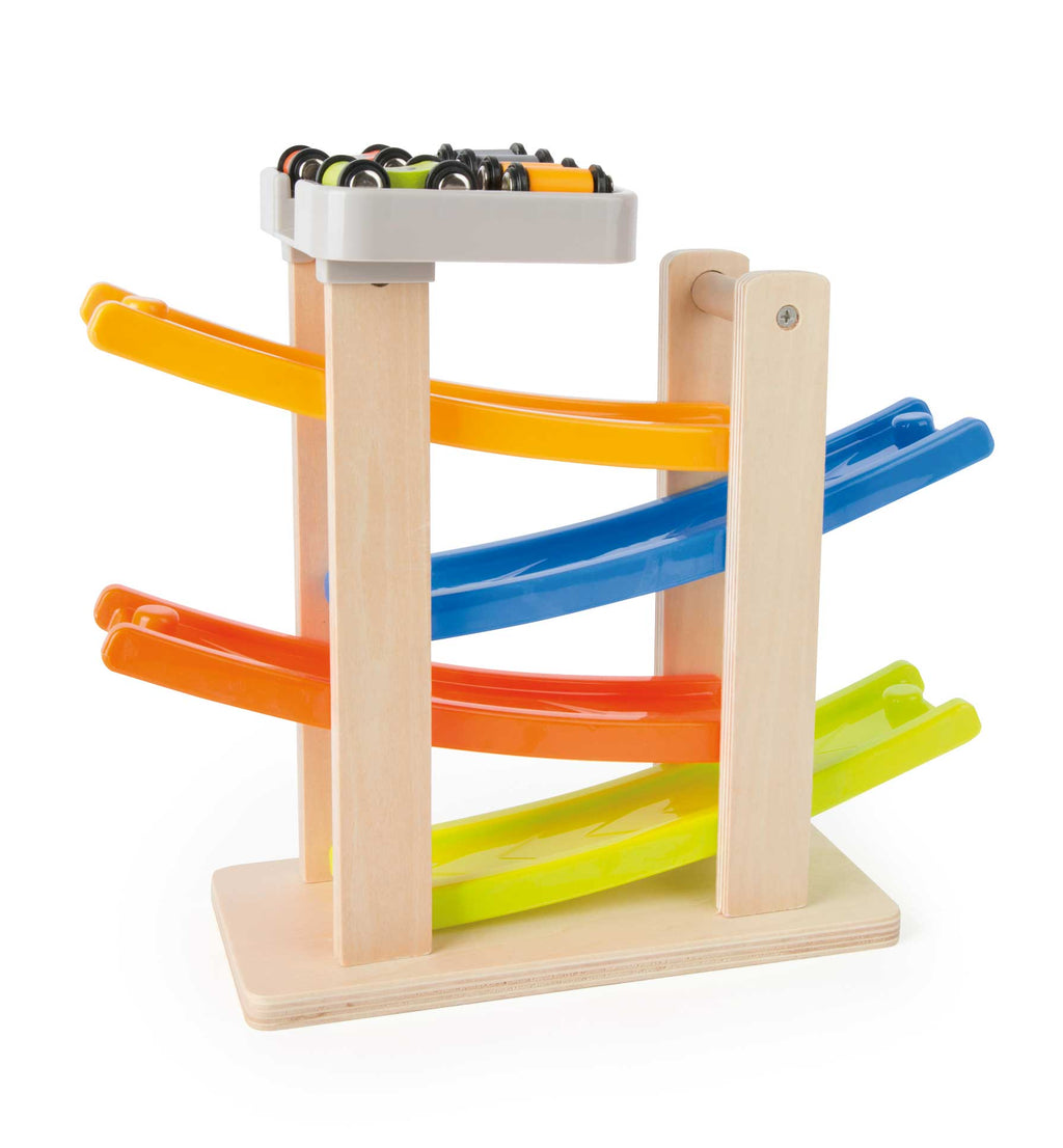 Nu wordt de race pas echt heet! Deze houten raceauto's scheuren over de schansen en maken adembenemende salto's van niveau naar niveau. Deze houten racebaan heeft een stabiele basis en is goed uitgerust voor de kinderkamer. Klaar, af, af! Deze houten racebaan heeft een stabiele basis en is goed uitgerust voor in de kinderkamer. Op uw plaatsen, klaar, af!