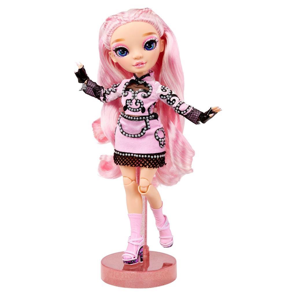 Rainbow High Rainbow Vision Minnie Choi van K-popband Royal Threeheeftlavendelroze glanzende haren en2outfits die hier perfect bij passen! Met bandmerchandise en headset met microfoon.Geschikt voor kinderen vanaf6 jaar.