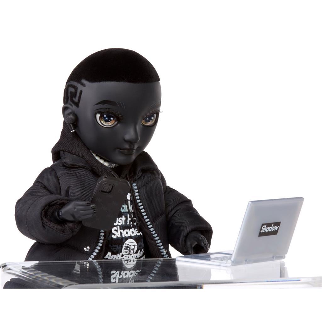 Shadow High S23 Modepop Rexx McQueen. Inhoud set: modepop, outfit inclusief schoenen, oordopjes, ketting, flesje, tasje, telefoon en laptop. Geschikt voor kinderen vanaf 4 jaar oud.