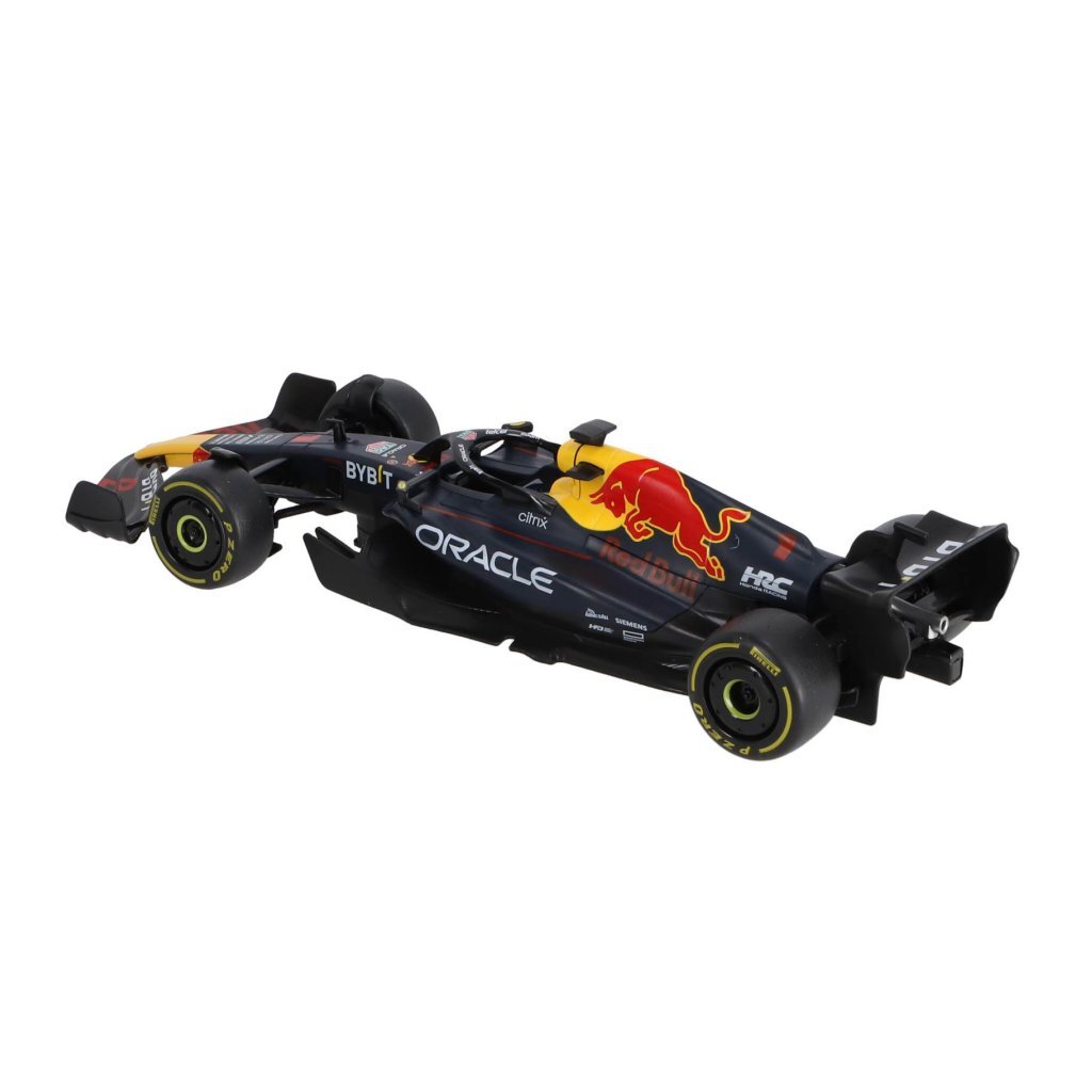 Op afstand Bestuurbare F1 Raceauto - RC Oracle Red Bull Racing Rastar van Max Verstappen. De auto heeft een afstandsbediening, bereik van 10 meter en maximumsnelheid van 11 km/u. De RC auto is 9 x 30 centimeter groot (schaal 1:18) en geschikt vanaf 8 jaar.