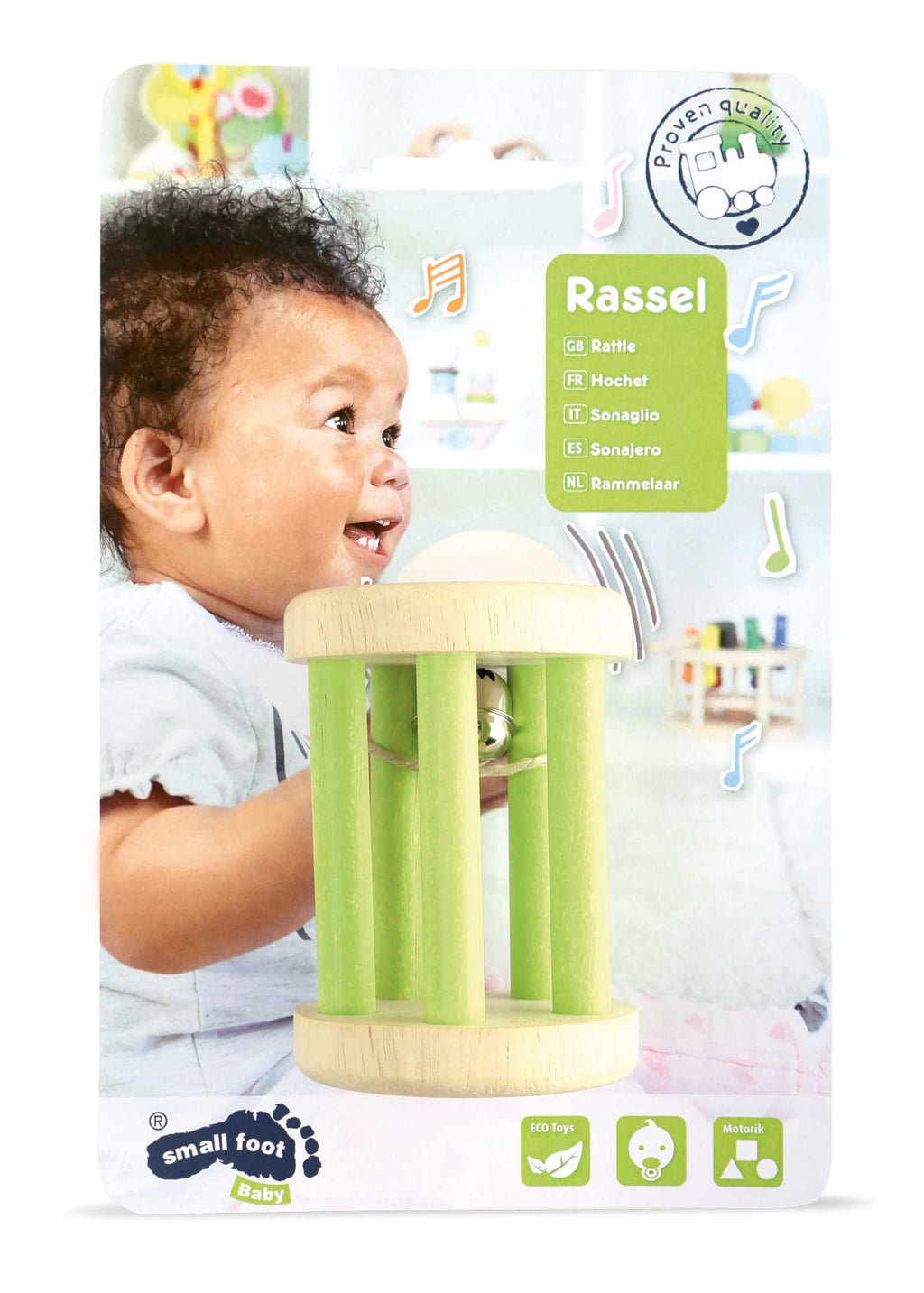 Met deze unieke rammelaar leer je beter grijpen, bewegen en luisteren. Schud de rammelaar om het belletje te horen of rol ermee en luister naar het gerinkel!