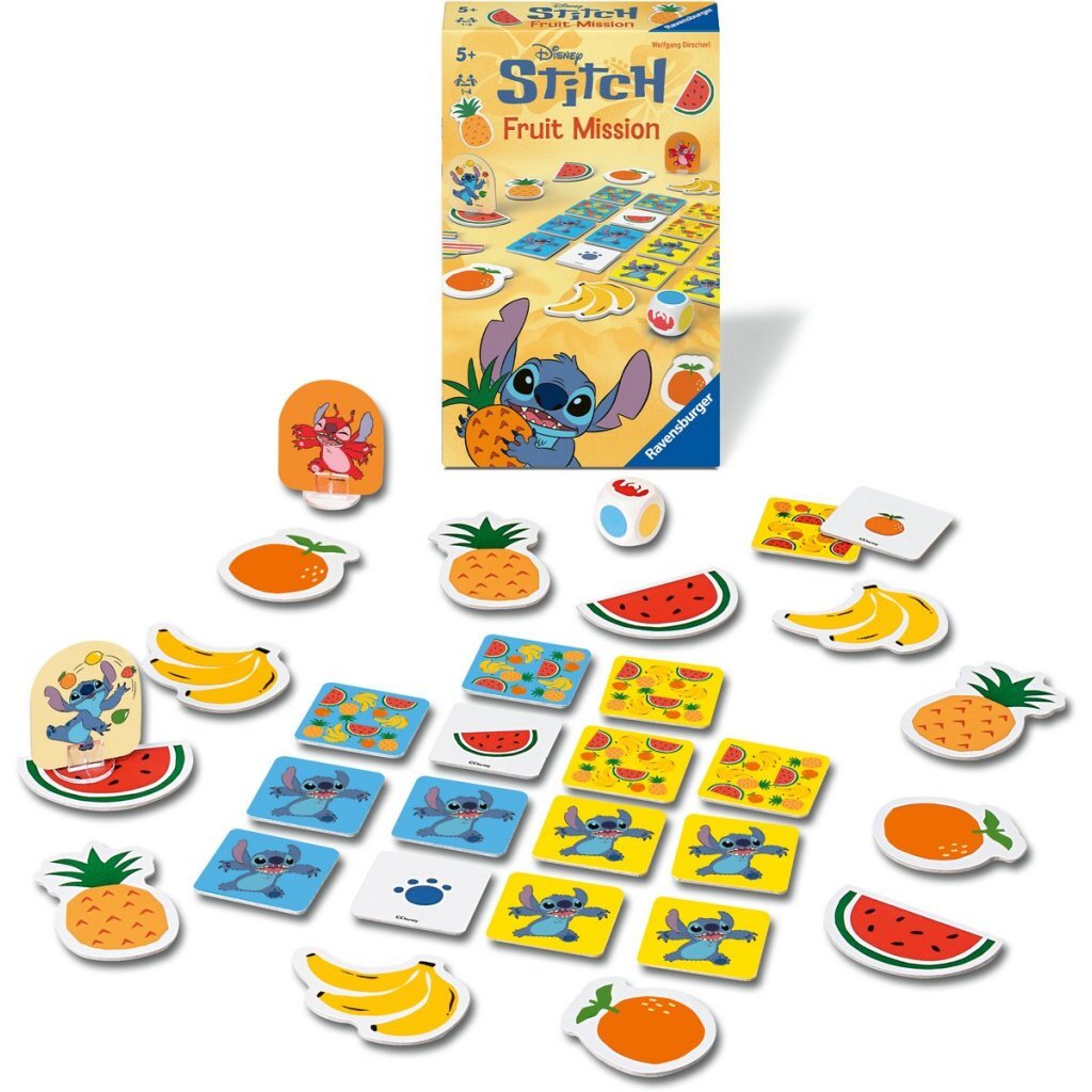Ravensburger Disney Stitch Fruit Mission. Geschikt voor 1 tot 4 spelers vanaf 5 jaar.