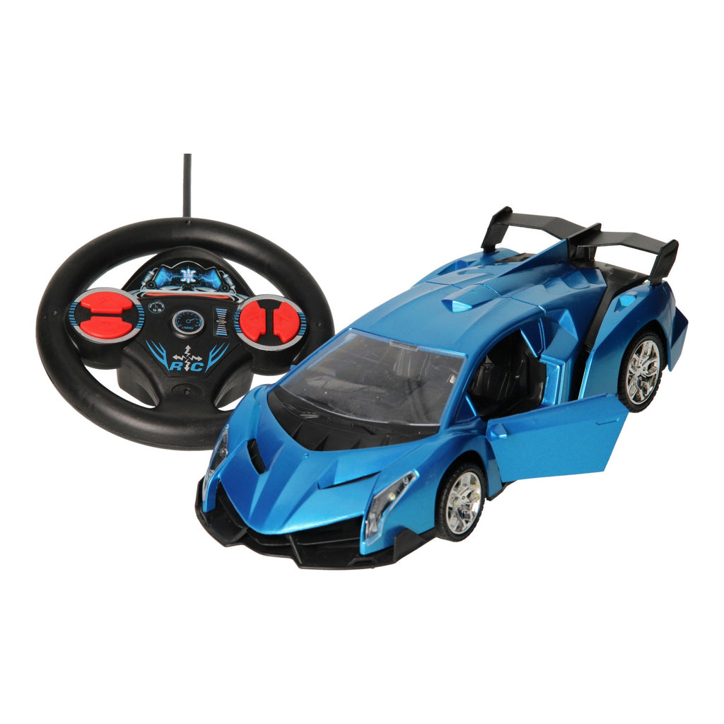 Deze gave rode raceauto kun je helemaal zelf besturen. Beweeg de raceauto naar voren, achteren, links en rechts. De deuren van de raceauto kunnen open en de koplampen gaan aan tijdens het rijden. De raceauto rijdt het beste op een vlakke ondergrond. Hij is op afstand bestuurbaar tot ongeveer 10 meter. Ook in het rood verkrijgbaar. De auto werkt op 5 AA batterijen (niet inbegrepen).
