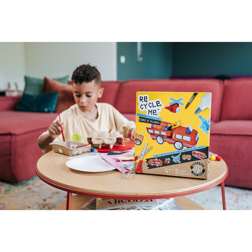 Re Cycle Me gelooft in een wereld waarin kinderen en hun ouders zich meer bewust worden van de hoeveelheid afval die we allemaal produceren. Kinderen kunnen helpen dit te verminderen door te recyclen! Met deze doos kun je een brandweerwagen, helikopter, vliegtuig, auto en raceauto maken. Het enige dat je uit je eigen kast nodig hebt is lijm, een schaar, een wc- en keukenrol en een eierdoos.