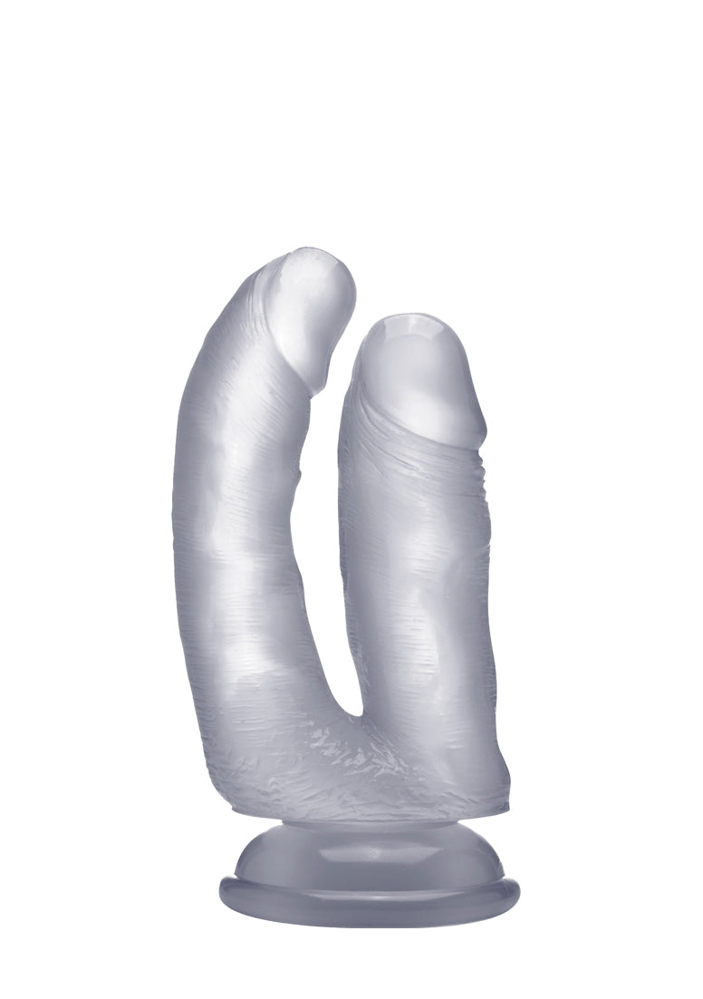 Dubbel plezier is dubbel genot met deze Real- Rock dildo voor dubbele penetratie! Deze dildo bestaat uit een penis van 10 voor vaginale penetratie, een gebogen dildo van 12 cm voor anale penetratie en hij verwent je als nooit tevoren. De dildo's zijn beide voorzien van realistische aders voor extra stimulatie waardoor ze ?echt" aanvoelen. De dildo heeft een supersterke zuignap, dus je kunt de dildo op bijna iedere vlakke ondergrond vastzetten. De RealRock dildo voor dubbele penetratie is verkrijgbaar in huidskleur, zwart en doorzichtig.
