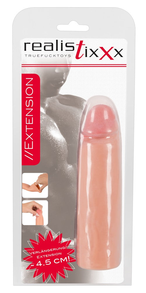The extremely soft penis sleeve Extension from Realistixxx is made out of seamless, non-porous Liquid Silicone. It extends the penis by 4.5 cm. With bulging glans and veins - silky smooth on the inside. The sleeve is very flexible and stretchy. If needed, it can be shortened very easily.